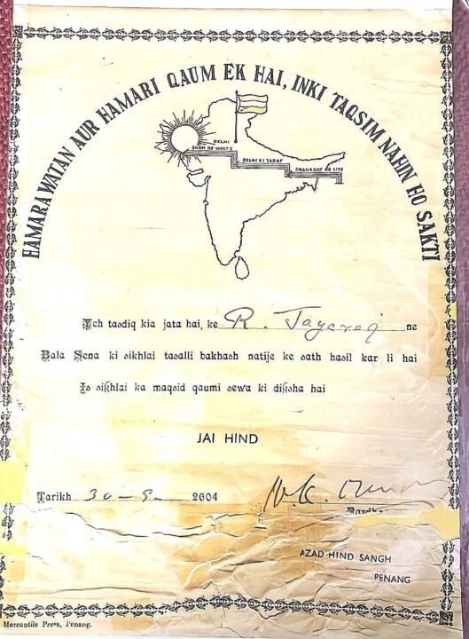 It was his teacher, Mathews, at Penang Free School who recognized his potential and encouraged him to join the Balak Sena. He readily agreed and underwent training on the same school premises in 1944, alongside other INA volunteers.